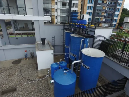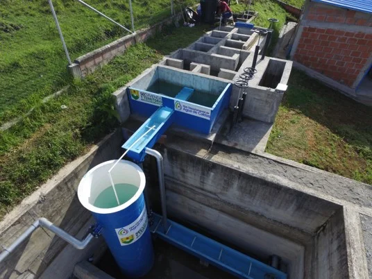 Planta de potabilización en un sistema de flujo confinado que involucra los procesos de floculación, clarificación, filtración y desinfección en una unidad muy compacta. Ideal para pequeñas comunidades aisladas con sistema de abastecimiento por gravedad y aguas de relativa buena calidad.